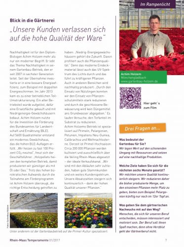 Ein Bericht in der „Gärtnerbörse“ 02/2015. Ein Bericht in „Rhein-Maas Temperamente“ 01/2017. Kontaktieren Sie uns!